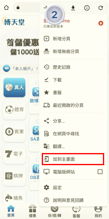 將博天堂官網'新增置主螢幕'